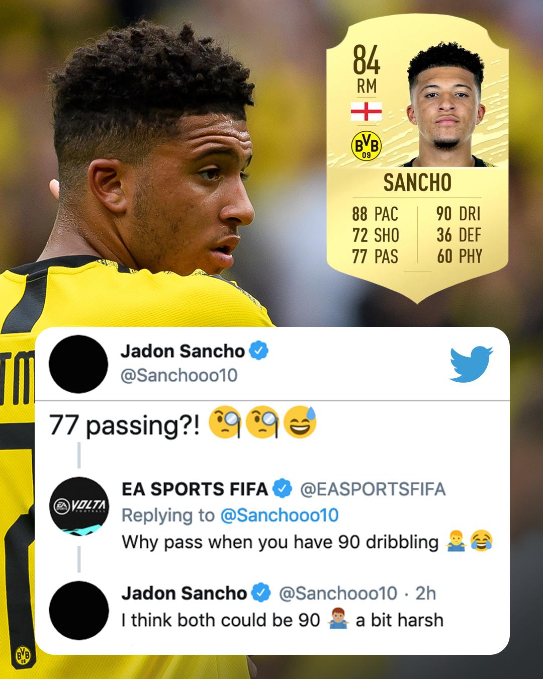 He is 20 years old from england and playing for dortmund in the bundesliga. Coming off the back of another fantastic season, sancho's overall rating was always going to increase in fifa 21. Jadon sancho joined borussia dortmund from manchester city in the summer of 2017. Well, a combination of a high rating and an obscure nation or league that results in a low price on the transfer market, that's what. Jadon sancho, 20 years old only, an english professional footballer who plays as a winger for german bundesliga club borussia dortmund, is one of the most popular winger players in europe;